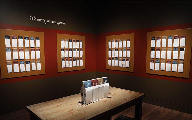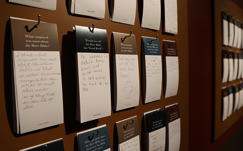 Join an ongoing conversation about the Slave Bible and its significance then and now in the exhibition’s response area.